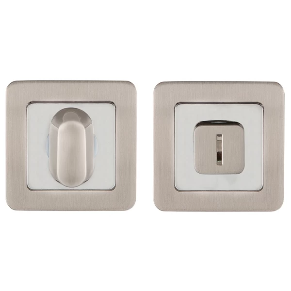 Поворотные ручки на квадратном основании Punto ET серии QR из коллекции SIMPLE LIVING подходят для установки на внутренние входные и межкомнатные двери. Материал изготовления: ZAMAK (сплав цинка, алюминия, магния и меди). Гальваническое покрытие прошло тест на устойчивость к коррозии в соляном тумане и соответствует 1 классу ГОСТ. Цвет: матовый никель/хром. В комплект входят: соединительный квадрат 6x80 мм, винты, стяжные винты.