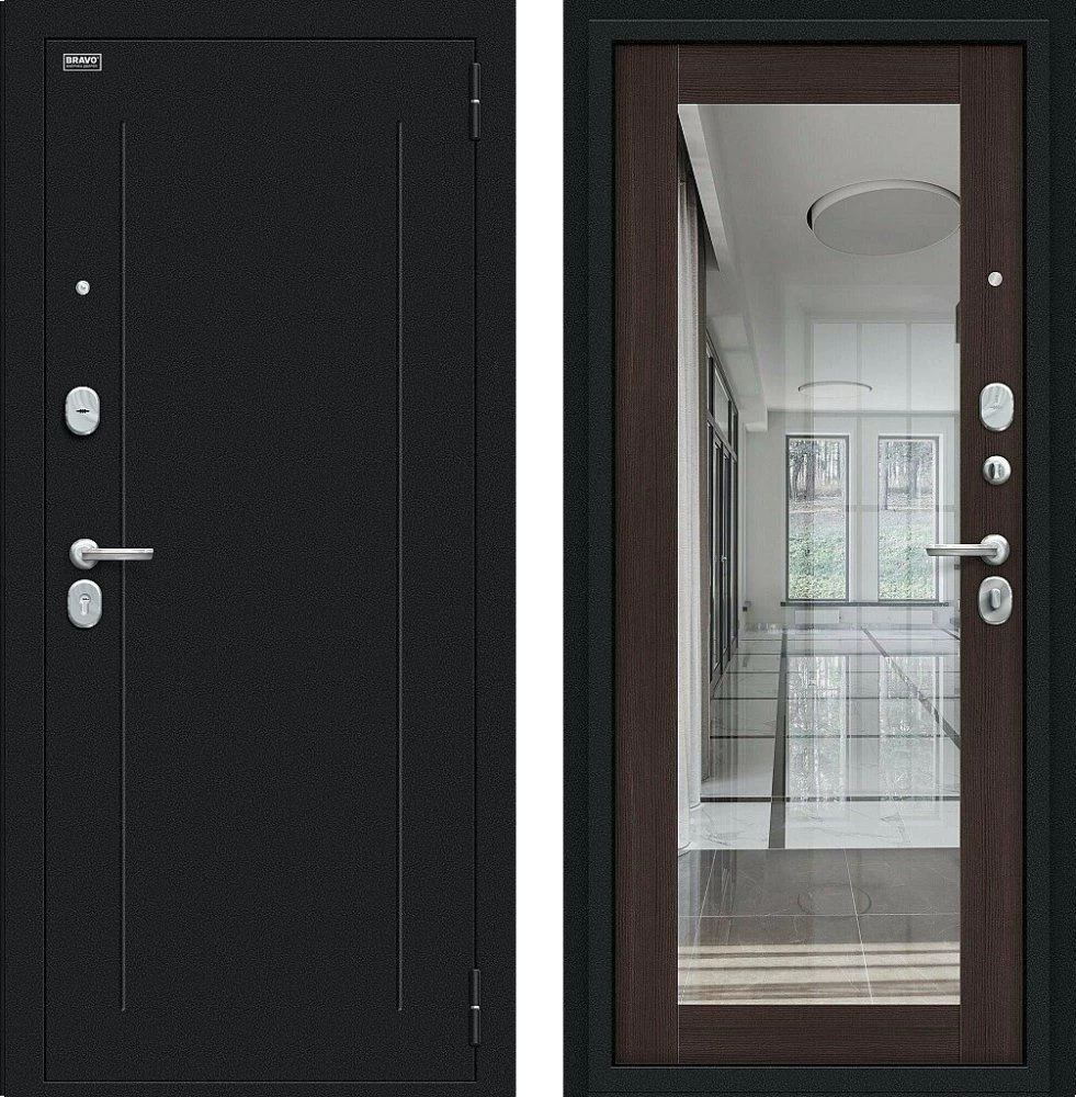 Надежная входная Дверь Браво Флэш Букле черное/Wenge Veralinga премиум класса по цене 30 650 руб. Большая толщина стали защитит от проникновения в ваш дом, квартиру или коттедж. Используется очень качественная фурнитура: замки, цилиндры, ручки, защелки. Покрытие и отделка двери изготовлено под внимательным контролем производителя. Дверь имеет долгий срок службы и гарантию.